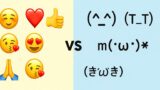 英語圏では 🙂 や 😀 など横向きの顔文字が多く、シンプルで短い傾向があります。一方、日本では縦向きで表情が豊かな顔文字(例:(^_^)、(T_T))が一般的です。また、日本語では文字文化が豊富なため、表情だけでなく行動や状態まで顔文字で表すことが多いのが特徴です。英語圏では感情の強弱を句読点や大文字で表現する傾向があり、日本語ではデコ文字や特殊記号でニュアンスを加えるという違いがあります。