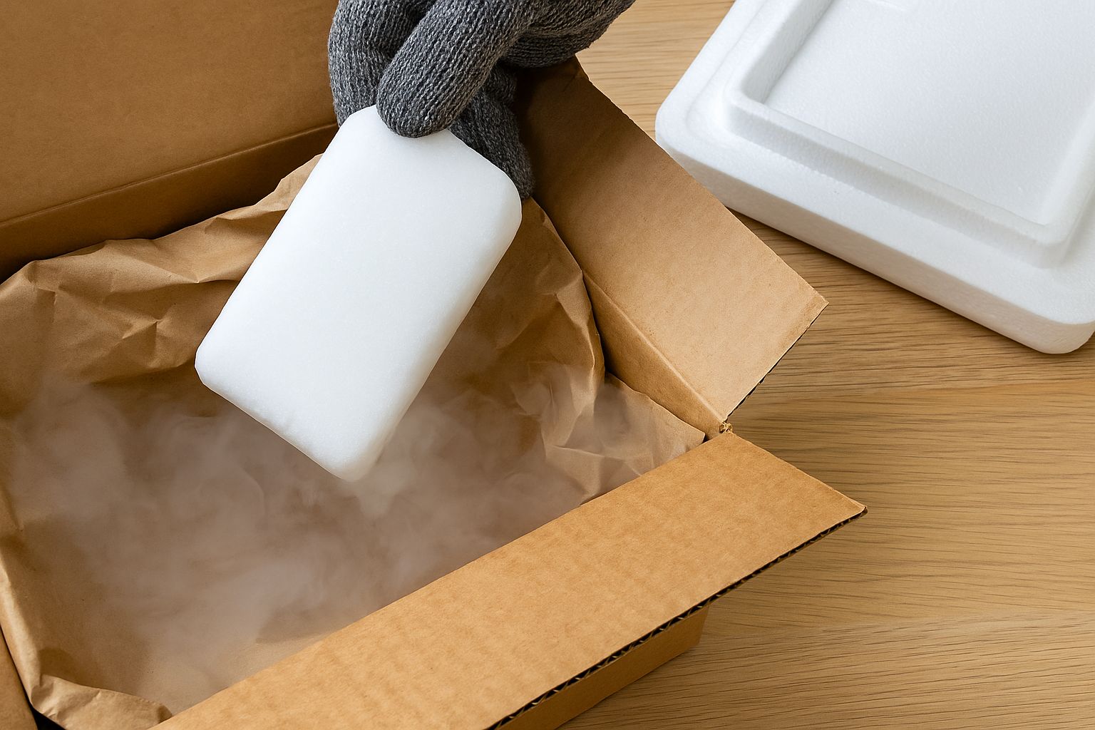 ドライアイスを冷凍庫に入れてしまう方もいますが、実はこれは推奨されていません。冷凍庫内の温度は-20℃前後のため、-79℃のドライアイスとは温度差が大きく、すぐに昇華が進みます。さらに、ガス化した二酸化炭素が庫内に充満すると、センサーに影響を与えたり、電気系統のトラブルを引き起こす可能性も。保冷目的で一時的に入れる場合でも、数時間以内に取り出すように心がけましょう。