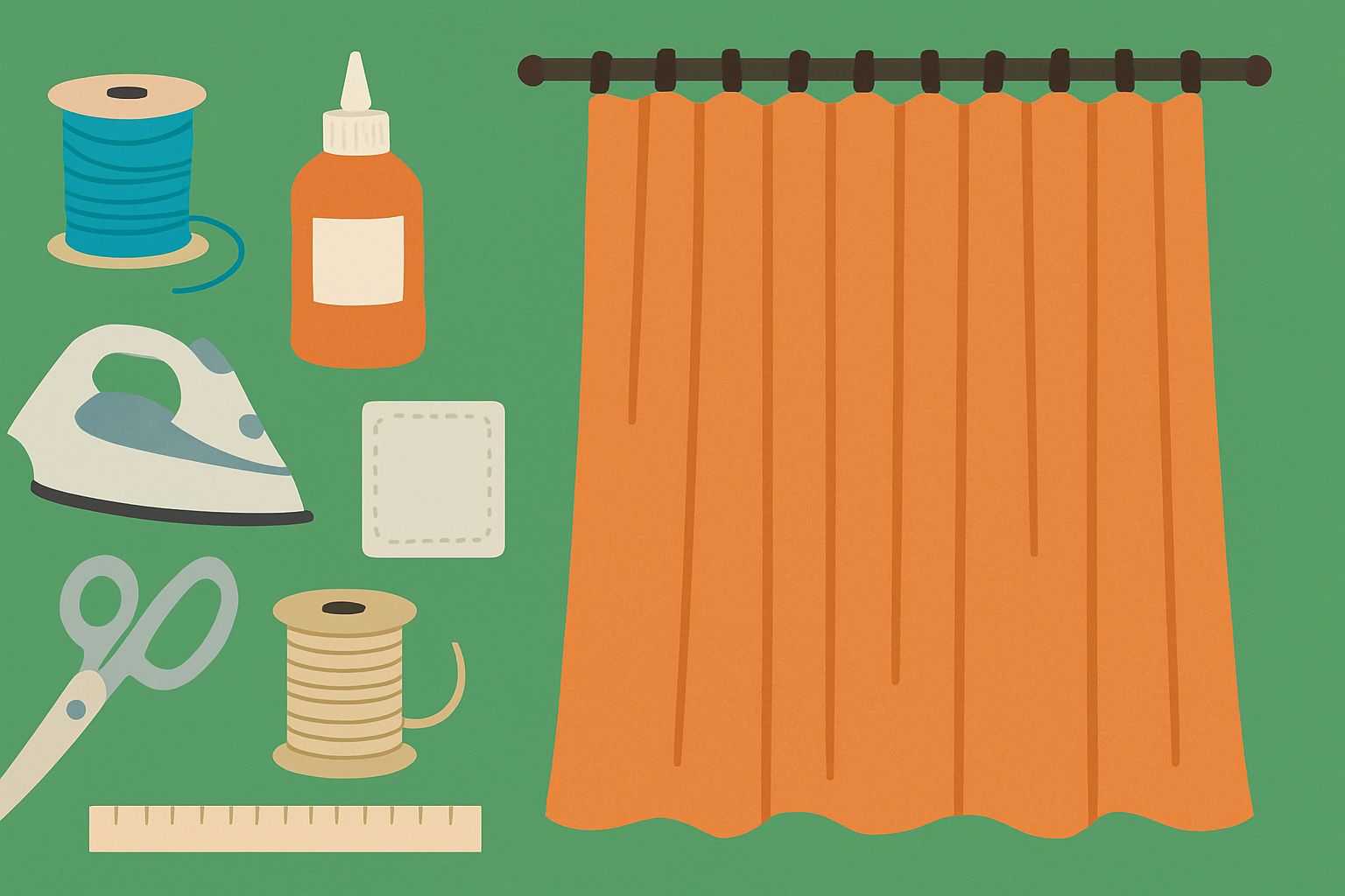 カーテンテープの代わりに、自宅にあるミシンや接着剤を使ってカーテンを仕上げることもできます。たとえば、布の上部に2〜3回折り返しステッチをかけることで、簡易的な補強が可能です。また、布用接着剤やグルーガンを使えば、ミシンがなくても作成可能です。布端の補強にはアイロン接着タイプの裾上げテープも便利で、洗濯にも耐える製品を選ぶと長持ちします。使い方のコツは、しっかり折り返して厚みを持たせること。これでフックの重さに耐えられる仕上がりになります。